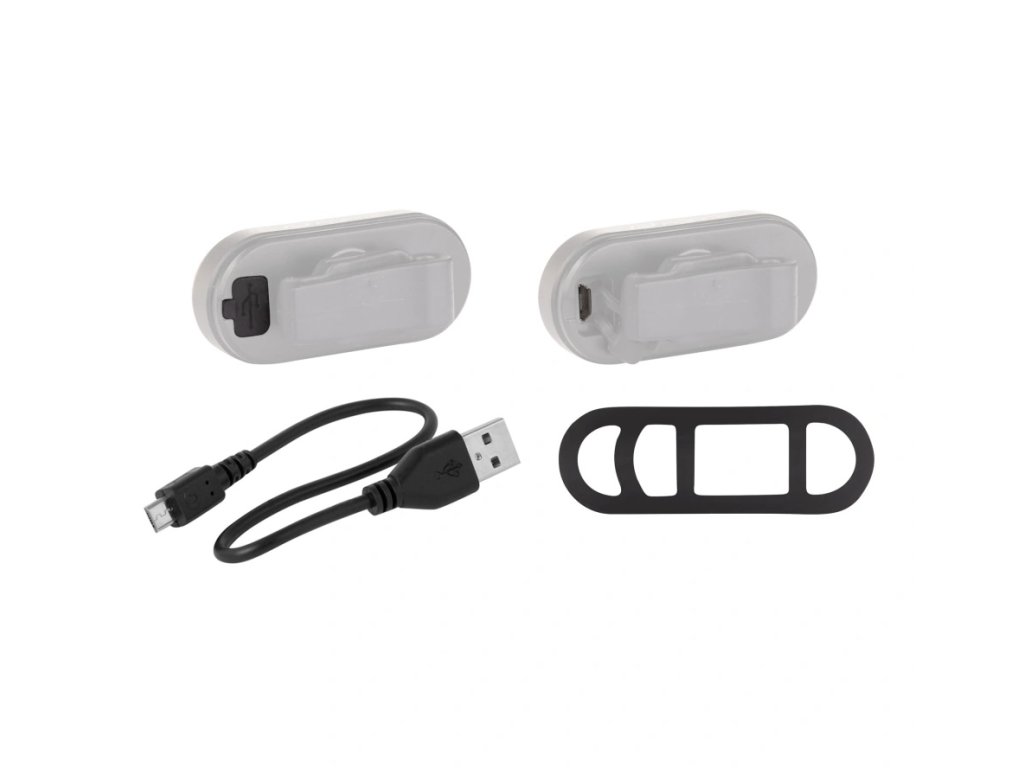 Součástí balení je držák na sedlovku a dobíjecí USB kabel.