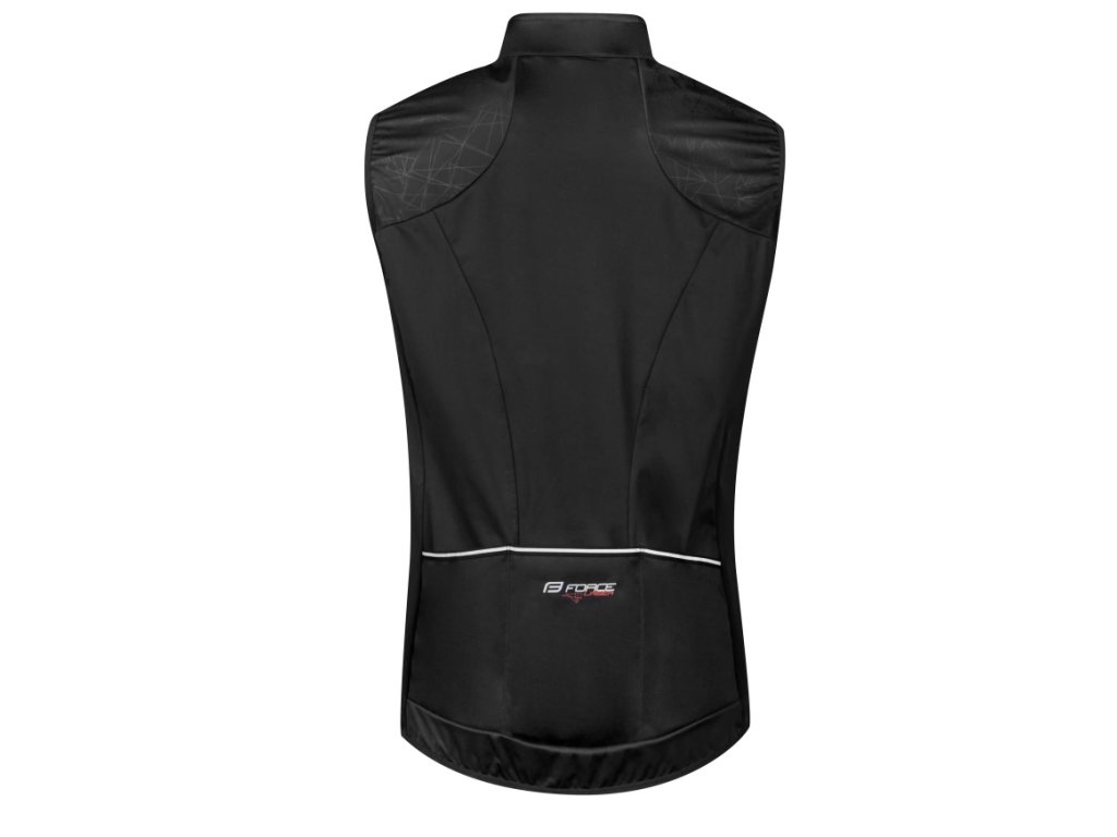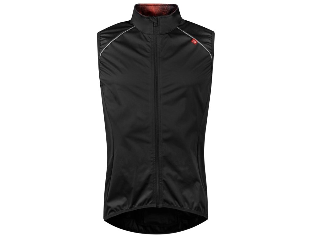 Lehká vesta proti větru. Celorozepínací zip Stojáček ke krku Reflexní prvky Tři zadní kapsy
