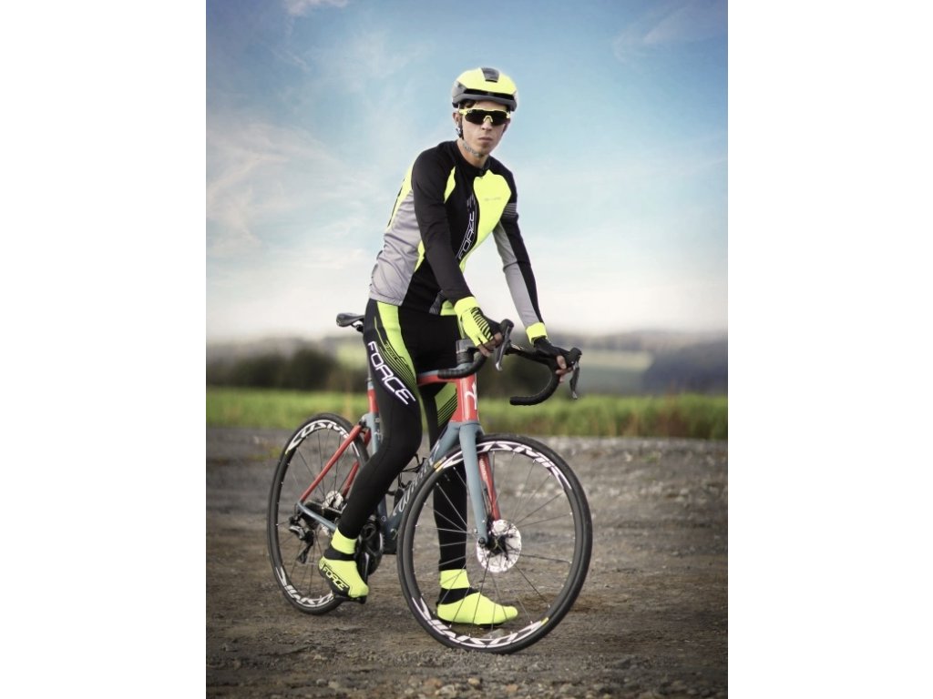 Kalhoty FORCE F58 se šráky bez vložky,črn-fluo