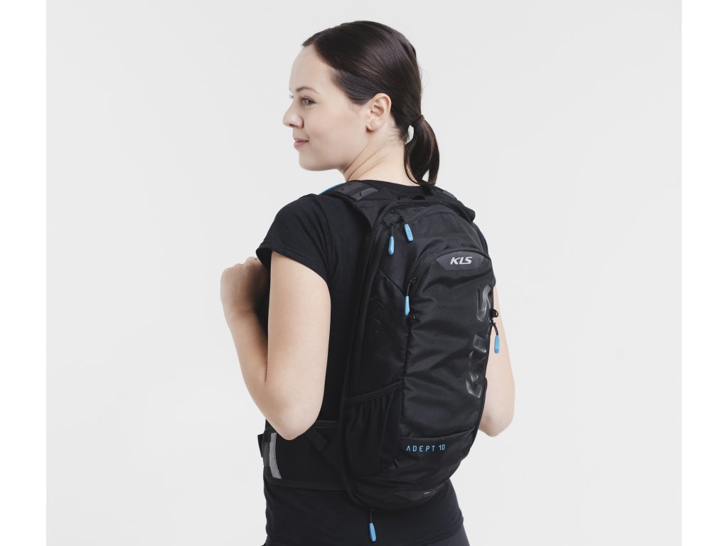 KLS ADEPT 10 díky většímu objemu unese více věcí. O komfort při nošení se postará pohodlný a dobře větraný zadní panel spolu s perforovanými ramenními popruhy. Vše bude uspořádáno díky vnitřním kapsám a samostatné sekci pro vodní vak. Batoh má síťku na přenášení přilby uloženou v kapse na zip ve spodní části a přihrádku na sluneční brýle. Materiály použité na batoh KLS ADEPT 10 jsou vyrobeny ze 100 % recyklovaného polyesterového vlákna.