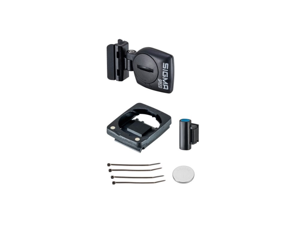 obsah balení: cyklopočítač včetně baterie, držák pro bezdrátový model, STS vysílač, magnet, upevňovací materiál, návod k použití