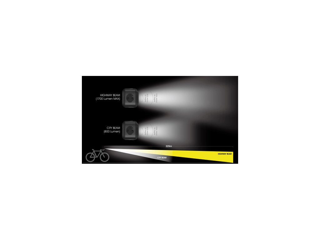 - Svítivost: 1700/800 lm (MODE1 režim dálniční/městský)